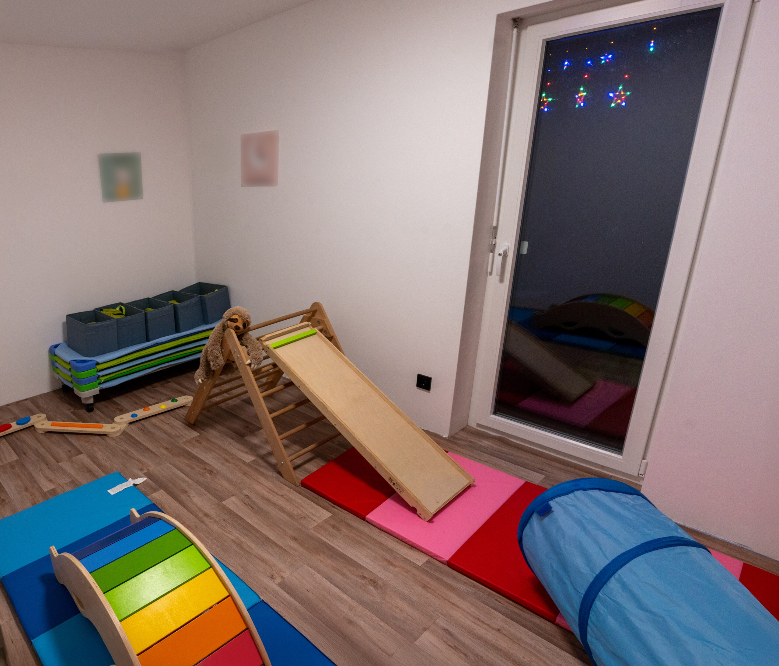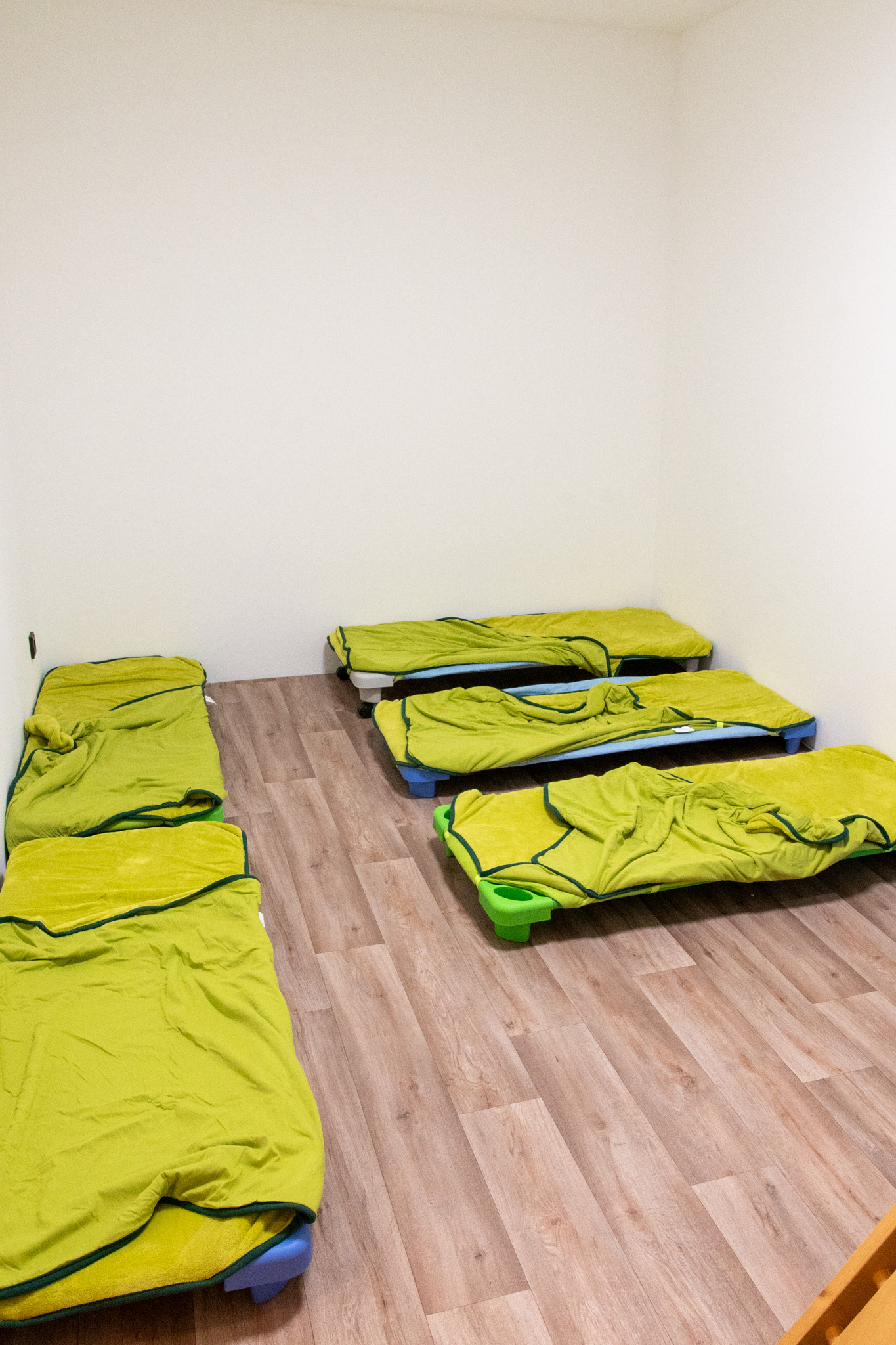 Der Schlafraum bietet den Kindern eine ruhige und entspannte Umgebung, in der sie sich ausruhen und neue Energie tanken können. Bei Bedarf kann der Raum auch zu einem Bewegungsraum umfunktioniert werden, um den Kindern noch mehr Möglichkeiten für aktive Entfaltung zu bieten.