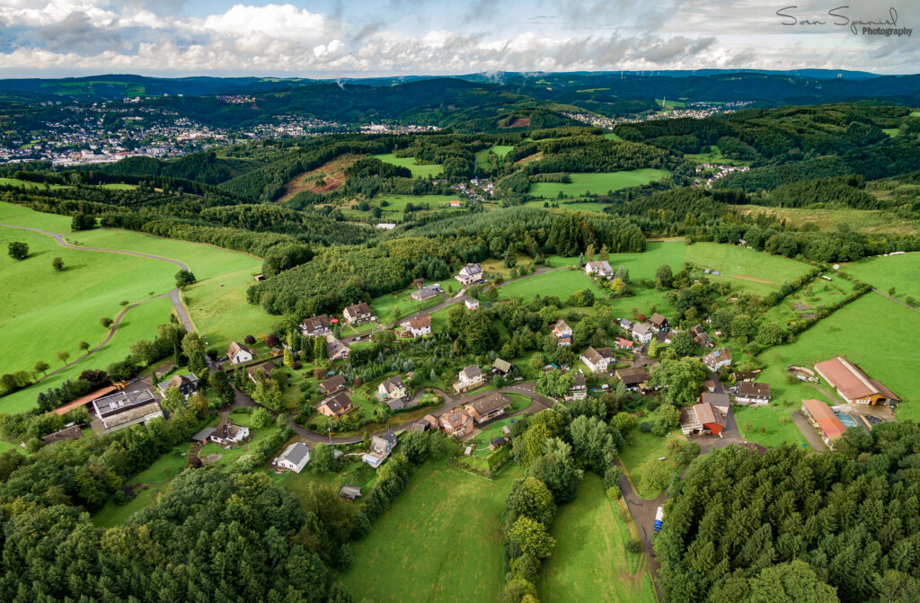 Luftaufnahme von Hüngringhausen aus dem Jahr 2017 (Diese Aufnahme entstand noch vor dem Bau unseres Hauses.)